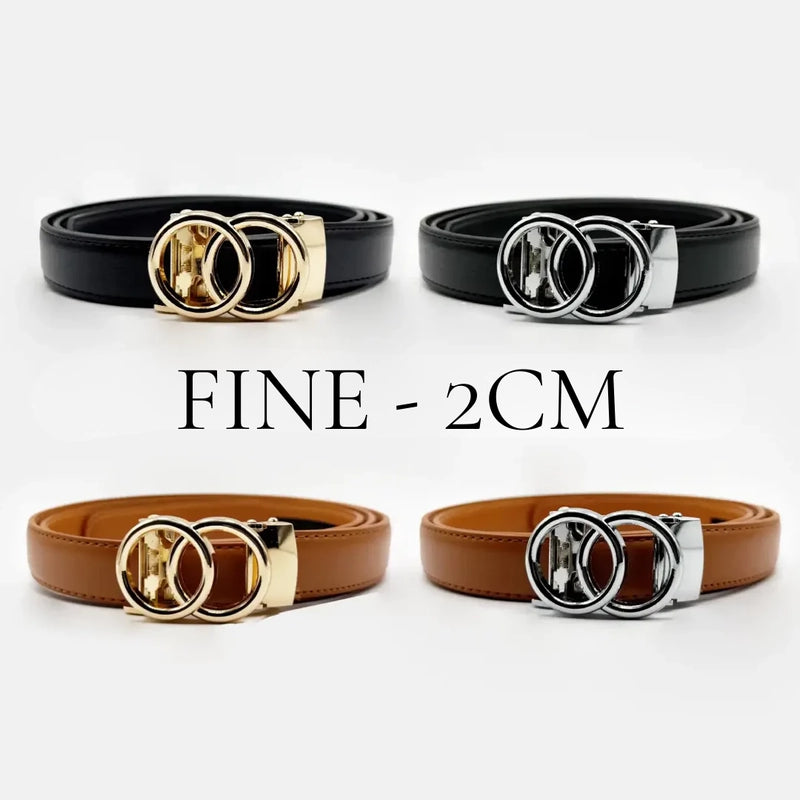 Il vous suffit d’insérer la sangle dans la boucle et de tirer : la ceinture se règle automatiquement à la précision parfaite. Après un repas ou lorsque vous souhaitez un léger relâchement, un simple clic permet d’ajuster instantanément le confort.